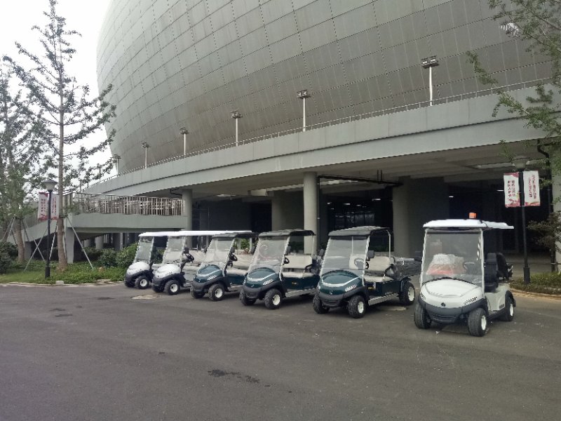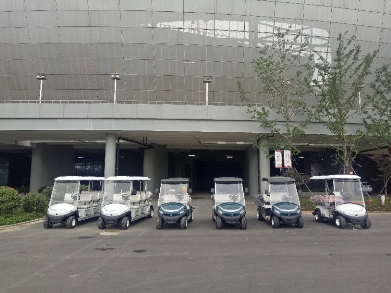 2018年7月在湖州奧體中心交付10臺綠友研發生產的電動觀光車,其中有4臺兩座電動巡邏車、1臺電動噴霧車、2臺電動工作車、2臺八座觀光車、1臺電動救護車。