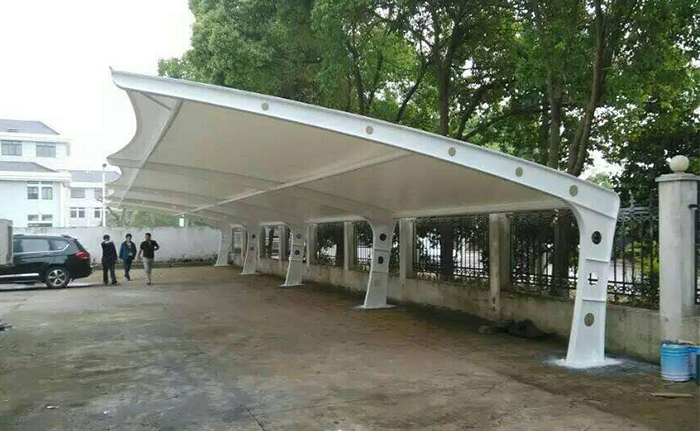 膜結構車棚一種作為屏障,用來維護車輛不受損害的一種修建,首要起到擋風遮雨的功用,還有膜結構車棚也是一件可貴藝術品。給人美的視覺享受。其柔美,其曲線,其剛柔并濟,其豐厚造型,其潔白無瑕,讓人眼前一亮,回味悠長。多見于公司企業(yè),事業(yè)單位,各類公共場所中。